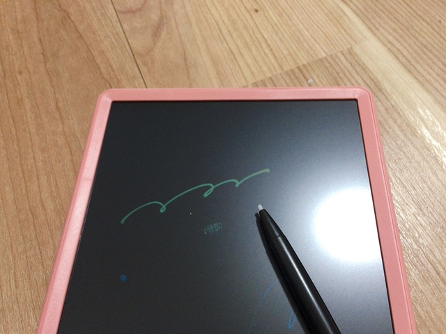 電子パッド特有のツルツルした描き心地ですが、ダイソーの電子パッドと違ってできあがりの絵がカラフルになります。