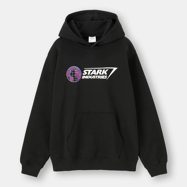 胸元にアイアンマンやアークリアクターのロゴがあしらわれたスウェットと、スターク・インダストリーズのロゴのスウェットプルパーカです。