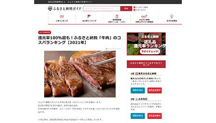 「ふるさと納税ガイド」は、ふるさと納税でもらえる牛肉の還元率ランキングを2月11日に発表した。