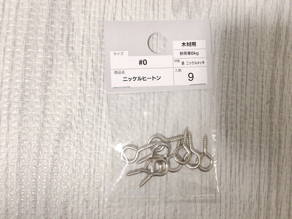 カインズで、ニッケルヒートンというヒモをくくりつける金具を購入しました。