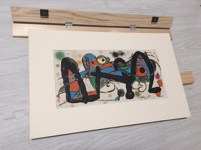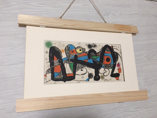 実際にミロのポスターを飾ってみました。木の質感を生かしたハンガーが色彩豊かな絵を引き立ててくれ、大満足です。