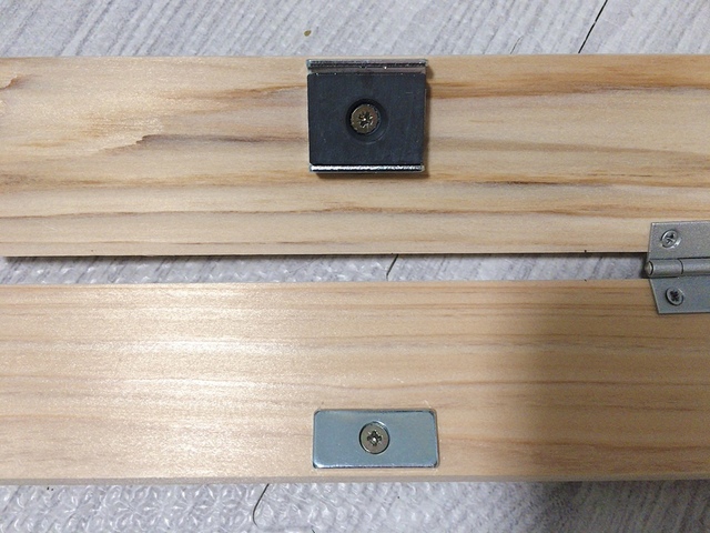 ここで筆者、磁石の選択を失敗したことに気づきます。試しに閉じてみると、磁石の厚みで板がぴったり閉まらない!