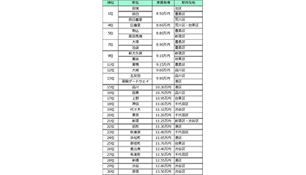 同ランキングは、「SUUMO」に2020年9~11月の期間に掲載されていた山手線沿線の駅(掲載物件が11件以上ある駅)の、駅徒歩15分以内、10平米以上~40平米未満、ワンルーム・1K・1DKの物件を対象にした調査に基づいて作成されている。