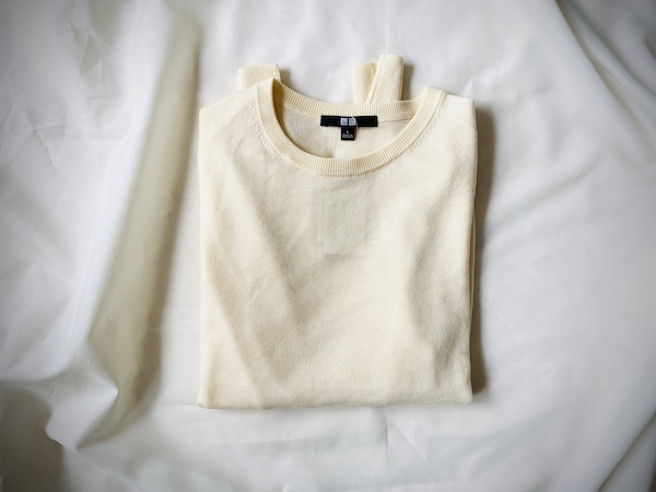 3: ユニクロ エクストラファインメリノ クルーネックセーター クリーム