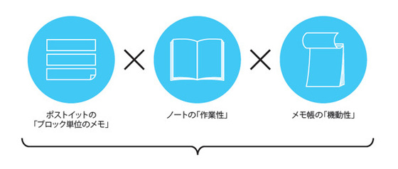 「同じことを一般的なメモ帳や手帳で行おうとしたら、至難の業です。ページをパラパラとめくり、ひとつのテーマに関連するメモを探して、そのすべて拾い上げるだけで、かなりの時間を使ってしまうでしょう。その手間と苦労を考えると、見開き1ページでアイデアを一覧できる効果は計り知れません」