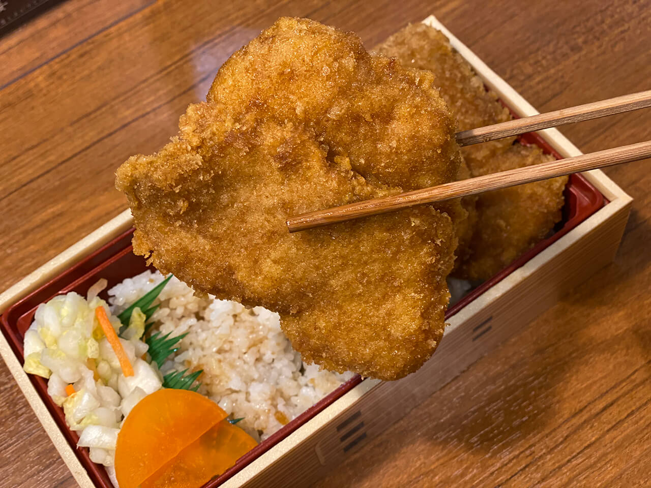 一枚一枚店舗で仕込んだ厳選されたもち豚は、その薄さからは想像できないくらいの存在感があります。油はラードのみを使用したピュアラードで揚げているそうです。