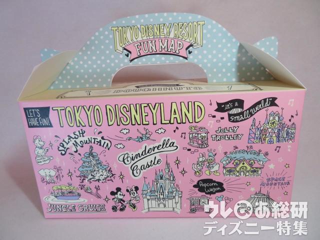 東京ディズニーランドと東京ディズニーシーのアトラクションやキャラクターの手書き風イラストのパッケージがかわいいドーナツ。