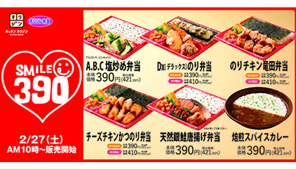 オリジン東秀は、弁当・惣菜専門店「キッチンオリジン」「オリジン弁当」全店で、2月27日10時から「スマイル弁当390シリーズ」を販売する。