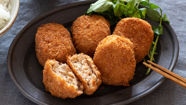 この特製コロッケは、その今半の職人によって選び抜かれた国産黒毛和牛と豚肉の合いびき肉、北海道産のホクホクのじゃがいもを使用し、秘伝の“わりした”で調味された逸品。