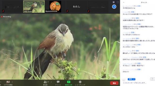 「鳥の鳴き声がたまらない!」という、チャットでの書き込みがありました。ゾウが草をむしる音、虫の鳴き声、カバの声ほか、動物が発する音や、ドライブ音がリアル聞こえて、まさにそこにいる気分になれます。