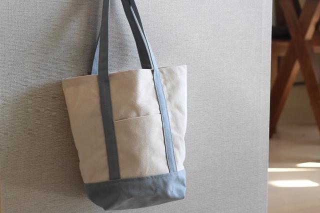 持ち手も長く、肩に掛けても安定します。縦29cm×横33cmと、ちょっとしたお出かけに良い大きさ。マチも15cmあるので安心です。