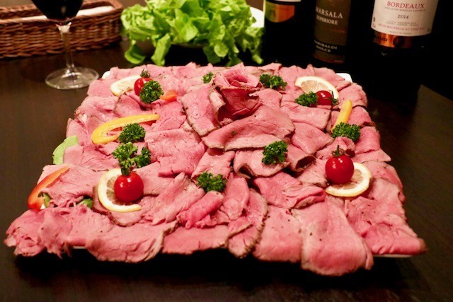 提供される肉はオーストラリア産最高品質の世界三大品種のブラックアンガス牛のローストビーフ。赤味と脂身のバランスが絶妙で、黒毛和牛に似た柔らかい肉質。口の中でジュワッとした旨味を味わいつつ、その食感も楽しめます。