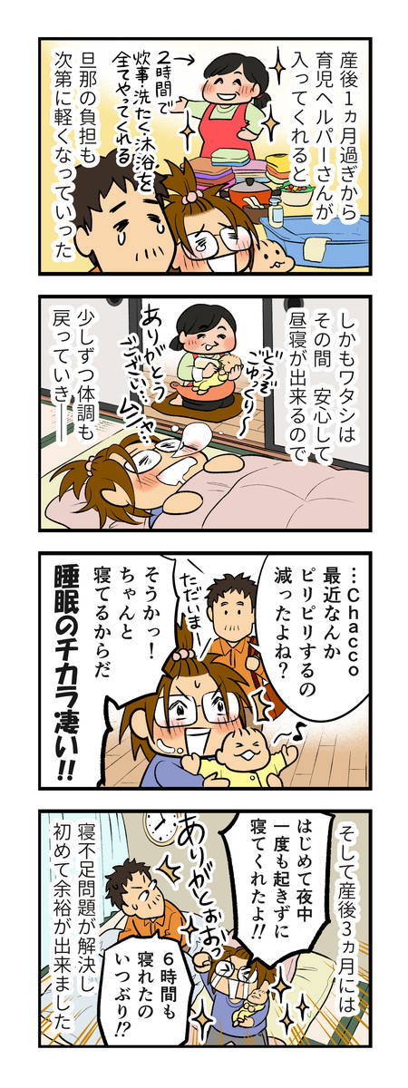 そして、ヘルパーさんが来てくれる日はムスコと昼寝で1~2時間。1日平均5~6時間眠れるような生活になりました。