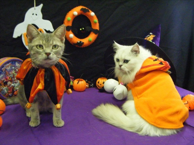ハロウィン衣装に仮装した10種類以上の猫とふれあえます。