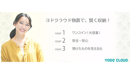 ヨドクラウド物置は、月額税込み550円から始められる宅配型トランクルーム。屋外の物置では湿度や温度差などが気になる、衣類や写真、季節物や子どもの工作といった思い出の品などを、大容量の専用ボックス1個単位から保管できる。専用ボックスを購入し、後日届いたボックスに預けたいものを入れて送るだけで、湿度・温度管理が行われている専用倉庫に保管される。なお、預けたものはPC・スマートフォンからネット上の写真で確認して、必要に応じて取り出せる。