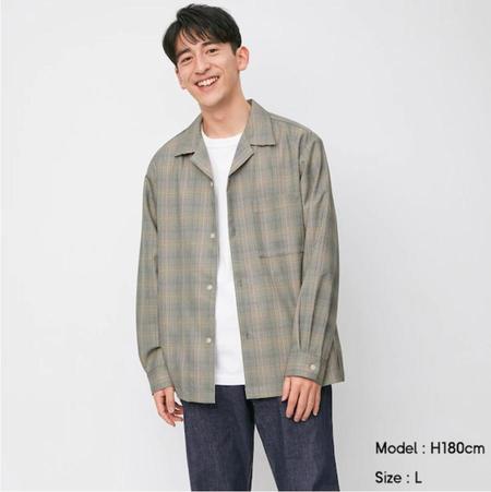 オープンカラーシャツ(長袖・チェック1・セットアップ可能)2,490円