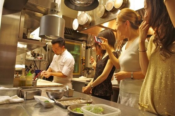 厨房でシェフの調理姿を見学