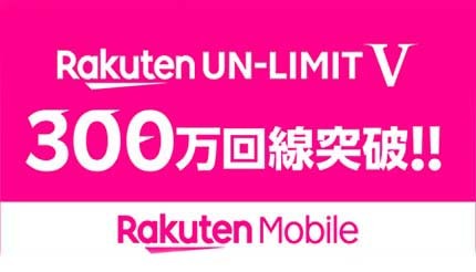 楽天モバイルは3月9日、キャリアサービス「Rakuten UN-LIMIT」の契約申し込み数が300万回線を突破したと発表した。なお、プラン料金が1年間無料になるキャンペーンは4月7日に受付を終了する。