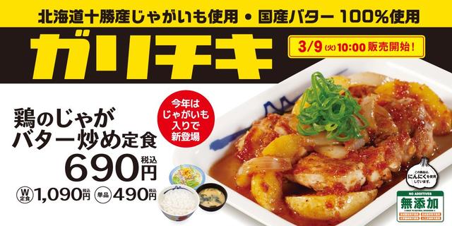 「松屋」では2021年3月9日(火)から、松屋の毎年定番の大ヒットメニュー「ガリチキ」にじゃがいもを加えた「鶏のじゃがバター炒め定食」を販売しています。