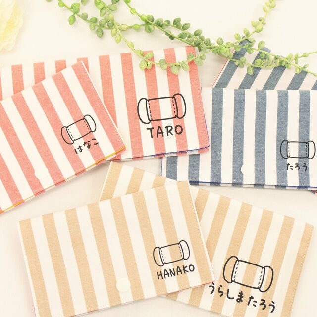 画像掲載商品:ストライプカラー♪お名前プリントのマスクケース