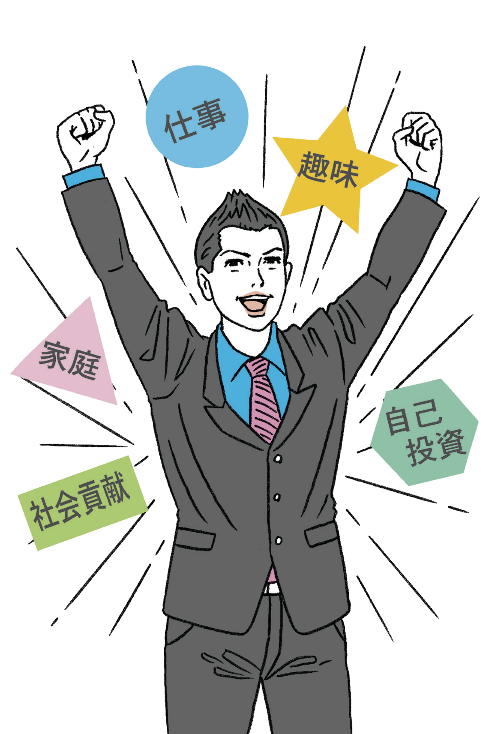 「仕事はもちろん大切ですが、人生において重要なものは仕事だけではありません。私は自分の人生における価値を、仕事・趣味・家庭・自己投資・社会貢献の5つだと考えています。そのどれかひとつが欠けても、私らしい人生とは言えないでしょう。また、この5つの価値観のウェイトは日々変わっていくもの。自分らしい生き方を見失わないためには、自分はどのような生き方をしていくのか。つまり、人生を充実させるための「自分軸」を掲げるのです」