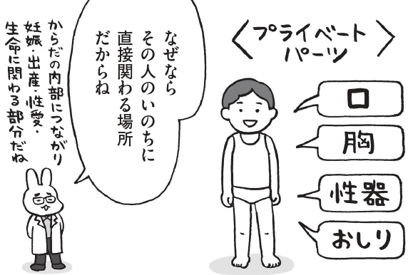 村瀬先生(以下、村瀬)「幼少期の子どもに性のことを教えるときに出てくる、口、胸、性器、おしりなどの“プライベートパーツ”ですが、これは小さな子どもでも特別な場所だという感情がわいてくるところです。