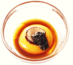 ⇒トリュフとうどんのまさかの出会い!なめらかな触感が特徴の稲庭うどん。生つけダレにトリュフ月見ダレを入れ麺と絡ませると、豊潤な香りの立つ上品な味わいを楽しめます。