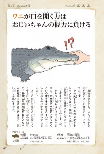 「ワニが口を開く力はおじいちゃんの握力に負ける」