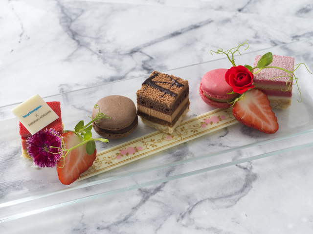 2種類のひと口サイズのケーキや、ピスタチオ&チョコレート味のマカロンなど、さまざまな味を少しずつ楽しめるのが、嬉しいポイント。