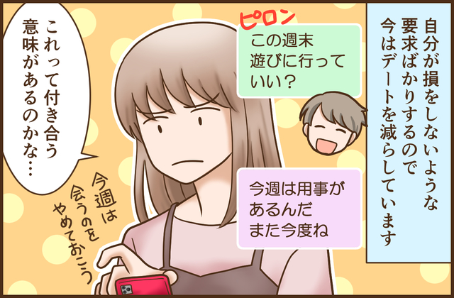 けれど、自分が損をしたくないからと彼女の家ばかり行きたがる、また彼女の家でも自分の負担を避けるような姿は、さすがに愛情が続きません。