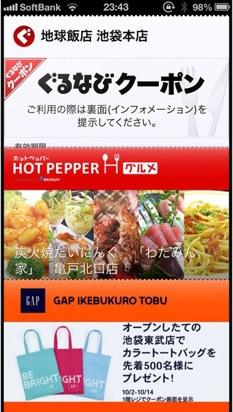 飛行機なんて滅多に乗らないし、映画だってそうそう見ないから、Passbookって自分には必要ない。なんてお思いの方、実はPassbookはチケットやカードを管理する機能だけではないのです。Passbookはクーポンも取得できるのです。