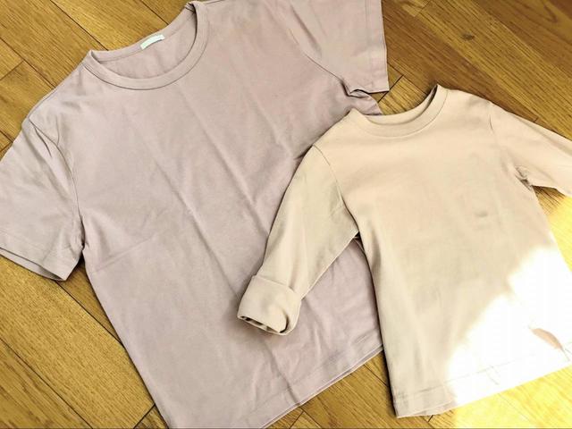 GUのクルーネックTシャツは、種類によって色のニュアンスが異なるので、同じピンクでもさまざまな表情を楽しめますよ。