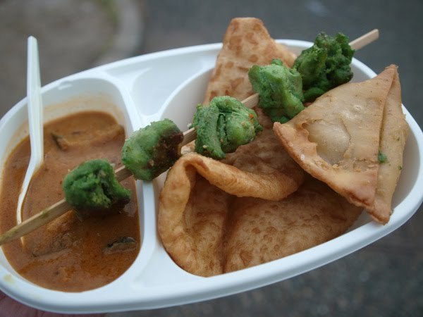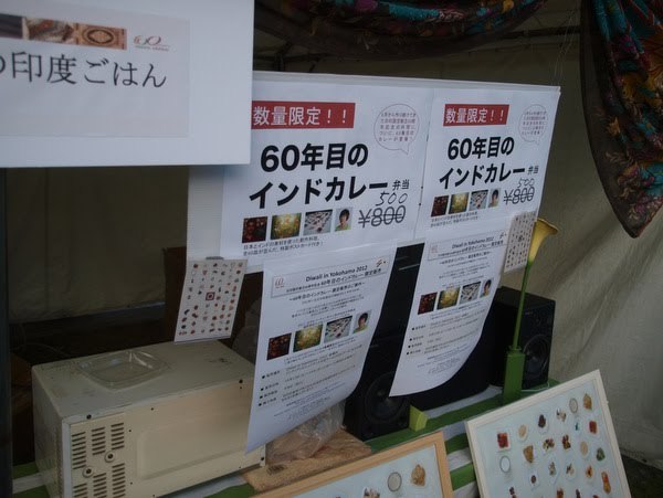 さて!各国系フェスといえば忘れちゃならないのが屋台で売ってるいろんなグルメ!まずお邪魔したのが、「60年目のインドカレー」なるブース。こちらは日印国交樹立60周年を記念した日本の食材×インドカレーテイストなフュージョン弁当で、ご飯は日本米、カレーはさんまのツミレが入っていたり、アチャール(インド風漬物)にごぼうを使っていたりと、かなり日印友好なお味でありました。夕方に行ったので割引されててしかもポストカードもついててお得!もうこうなったらもう1皿!というわけで、なすとじゃがいものカレー(アルベガン)に揚げパン(プーリー)付き、さらにはサモサにケバブもつけて!野菜ベースのインドカレー好きなんですよね…。そしてそして、この緑色をしたケバブ、パクチーとほうれん草のソースで焼いているとかで、色のエキセントリックさと裏腹に優しい味わい。サモサも、中のじゃがいもがホコホコしててうまい!んー、ご馳走様でした!