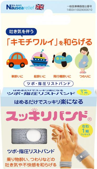 吐き気を緩和するリストバンドとして世界各国で販売されている「Sea-Band®」は、日本では「スッキリバンド®」として発売。