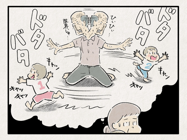• 男の子【子育て奮闘記】「おじいさんとおばあさんと、時々、ももたろう」#57「元も子もない…!“夏の散歩”」