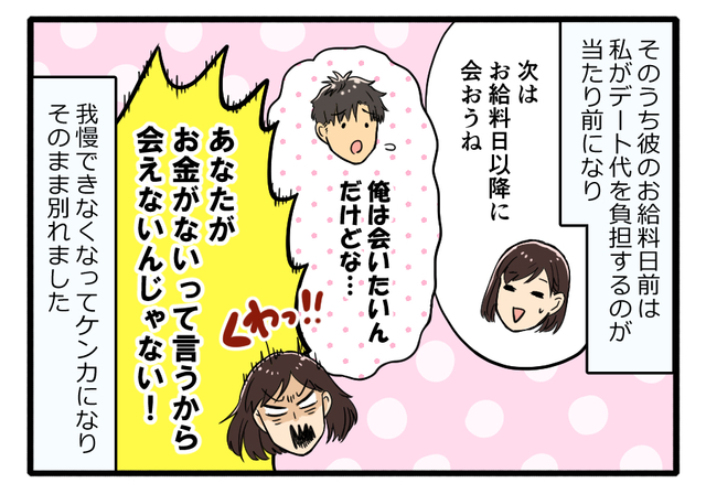 < > 前の写真 記事に戻る 次の写真 X Facebook この記事の写真一覧(全4枚) あわせて読みたい 恋愛彼女は財布がわり!?「たかる彼氏」のリアル#1「おうちデートで…」 恋愛彼女は財布がわり!?「たかる彼氏」のリアル #4「映画館での出来事」 別れ彼女との“別れ”を決意した瞬間 #1「かわいい顔が…」 恋愛NG集(えー…それはちょっと…)口には出さないけれど「彼氏が引いてる“6つのこと”」 デート彼女でも勘弁して!彼氏が【おうちデート】でやめてほしいと思うこと #13「我慢できないときもあるよ…」 恋愛私には魅力がない…恋愛がうまくいかない女性が持っている“ビリーフ=心のメガネ”って? >彼女彼氏#たかる彼氏デートカップル恋人