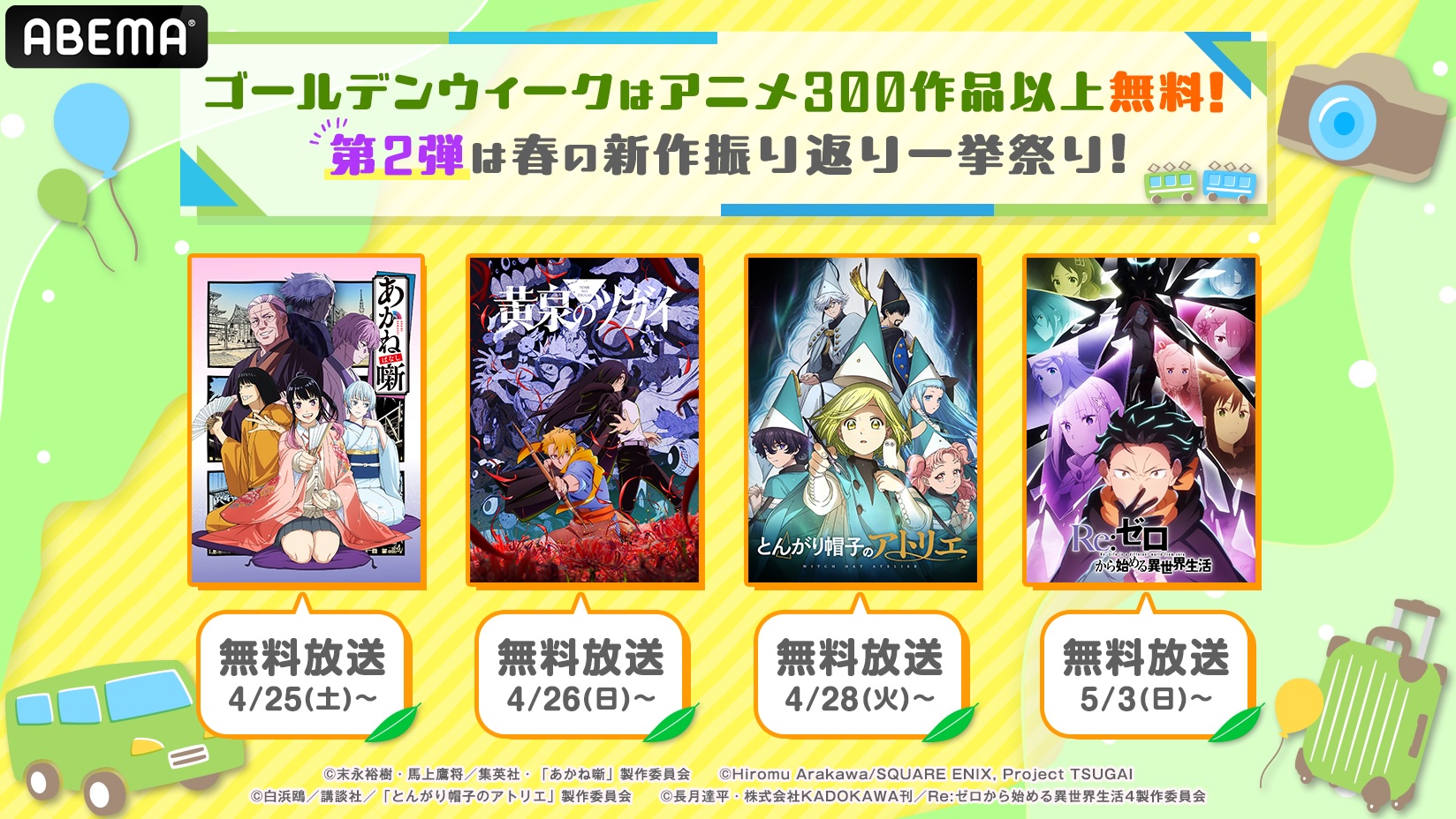 新商品『Re:ゼロから始める異世界生活 4th season』『黄泉のツガイ』など新作春アニメ40作品超を4月25日(土)より無料一挙放送決定!GWは話題作に一気に追いつくチャンス -