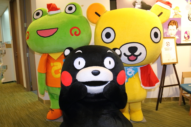 • PIAの受けつけではしゃぐくまモン 撮影:星野洋介