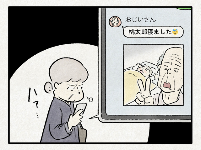 >おじいさんとおばあさんと、時々、ももたろう男の子ももまち子育てマンガ子ども_1歳