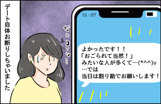 < > 前の写真 記事に戻る 次の写真 X Facebook この記事の写真一覧(全4枚) あわせて読みたい デート初めて彼女の家に行ったらショックを受けた #11「衛生的にちょっと…」 デート「普通ってなに!?」彼氏彼女のビックリエピソード #4「俺が先なの?!」 デートかわいい…!男性が思わずキュンとした女性のファッション #4「古くなっても…!」 デート彼女は財布がわり!?「たかる彼氏」のリアル #8「ドライブデートの後に…」 恋愛独身女性のあるあるな毎日 #3「手放せない○○」 浮気・不倫夫はどう出る!?マチアプで“こんな質問”をしてみたら…【旦那がマッチングアプリでやりとりしてる相手は嫁です #26話】 >マッチングアプリドン引きありえない質問気になる人