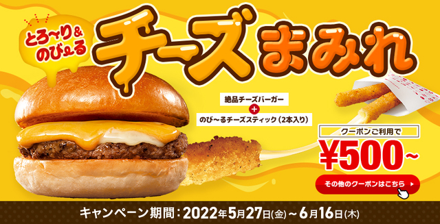チーズ好き必見!【ロッテリア】の看板メニュー3種が「チーズまみれ」でお得に食べられる♪