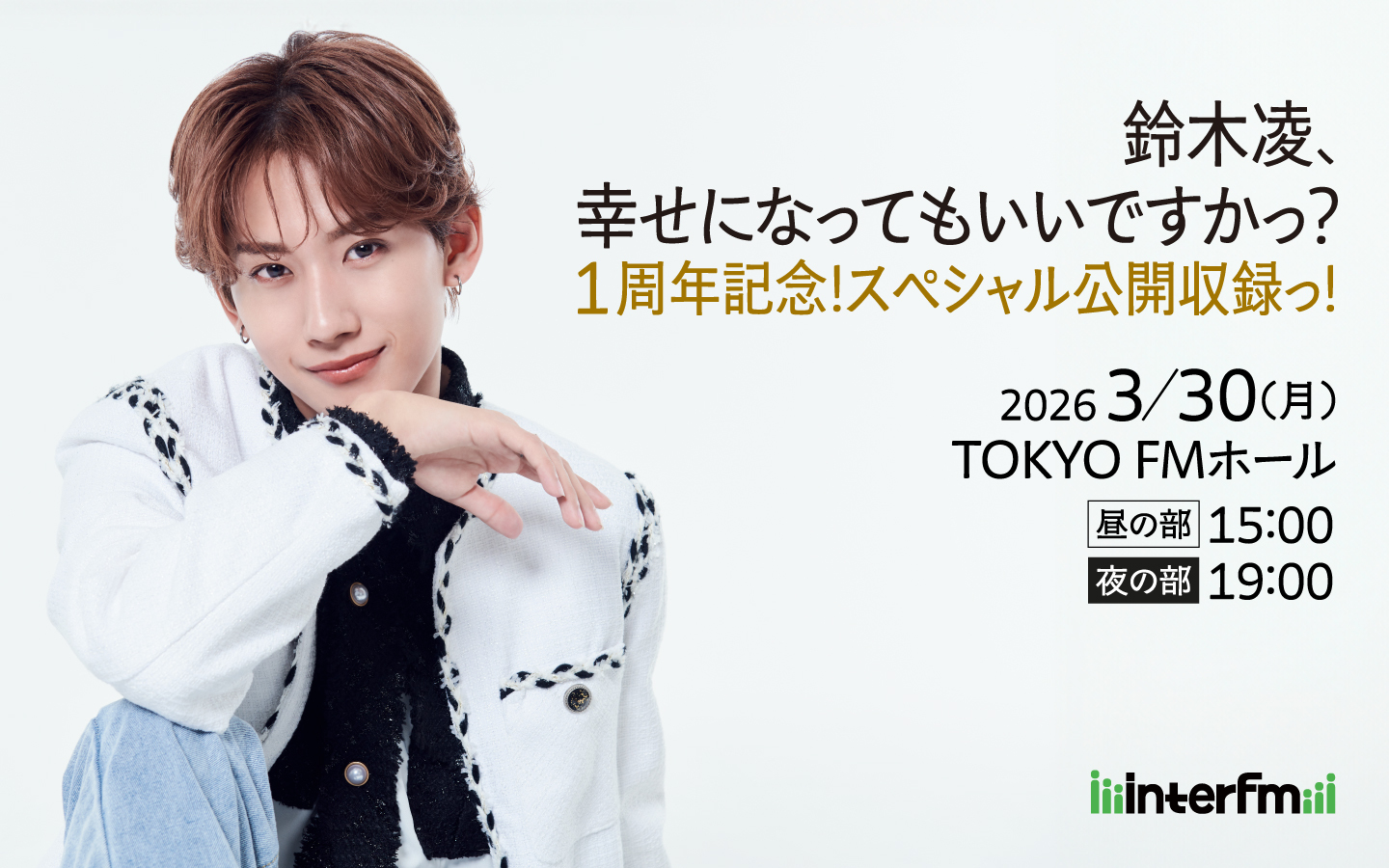 新商品interfm『鈴木凌、幸せになってもいいですかっ?』 1周年記念公開収録っ!ゲストに見取り図の盛山晋太郎と、音楽プロデューサーRyo'LEFTY'Miyata、音楽ディレクターコバヤシユウジが決定!