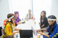 • 総長ダリアさん(左)にポストカードをいただきました! ライター中村(右)