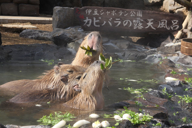 “カピバラさん”もいい湯だな〜! 超癒し天国シャボテン温泉でほっこり