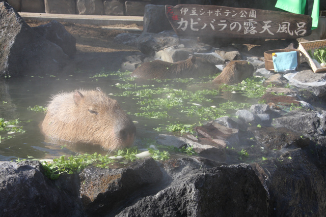 “カピバラさん”もいい湯だな〜! 超癒し天国シャボテン温泉でほっこり