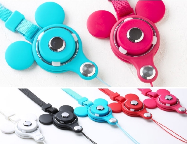 ネックストラップ『HandLinker Putto』がミッキーのシルエットになって新登場! ワンタッチで脱着できて、リングに指を通せば落下防止にも。選べる5色のカラーバリエーションです。