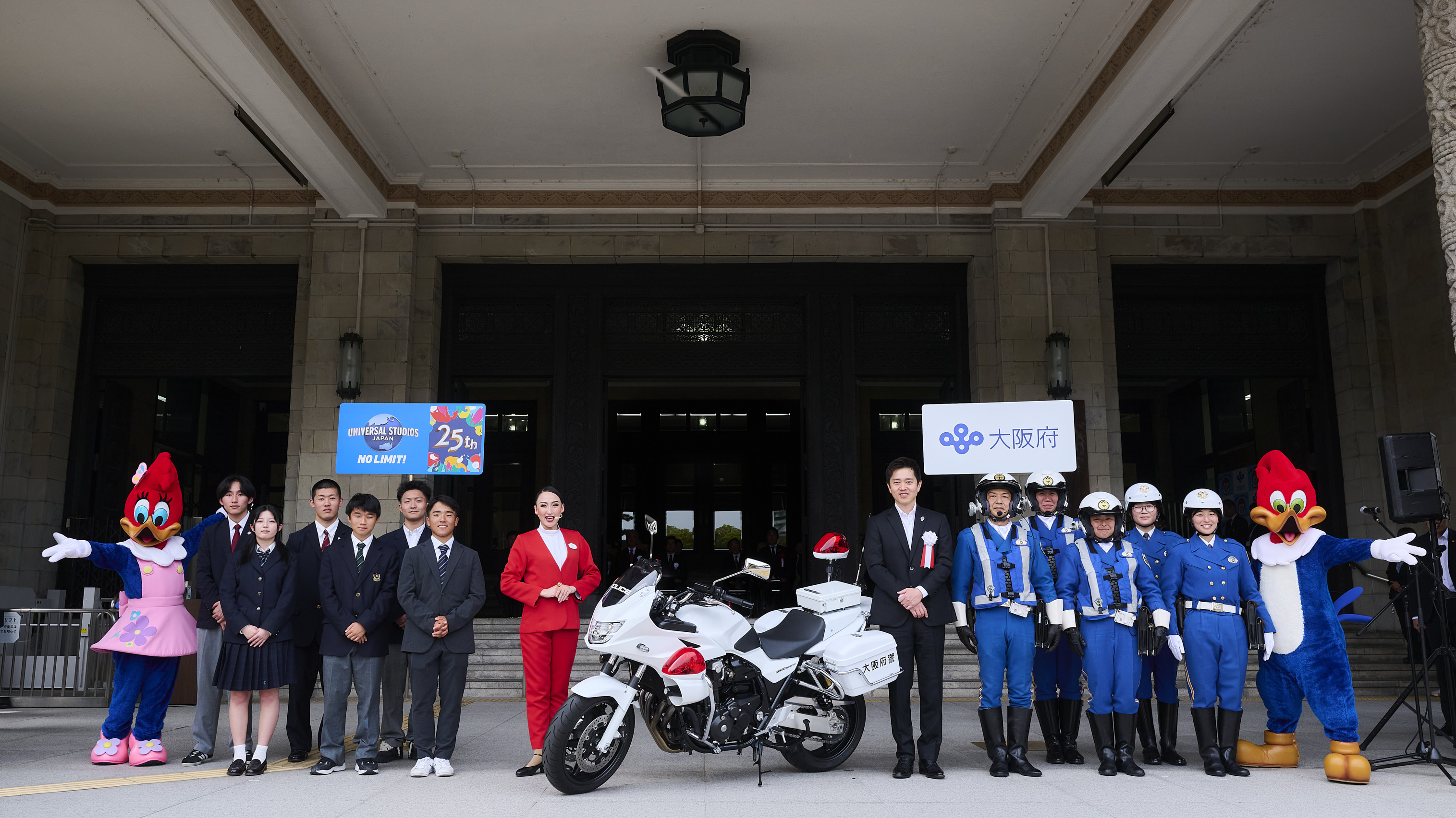 新商品大阪府との包括連携協定の一環として 「春の全国交通安全運動」に初参加ユニバーサル・スタジオ・ジャパンが警察官と一緒に、地元大阪で“交通安全”を呼びかけ