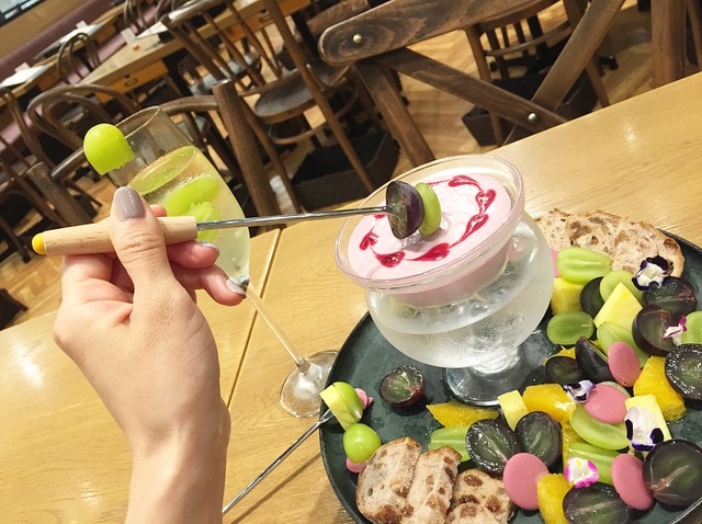 成城石井がプロデュースするワインバー『Le Bar Vin 52 AZABU TOKYO(以下ル バーラ ヴァン サンカンドゥ)』に、超おすすめ食べ放題メニューが登場!国産シャインマスカットを好きなだけディップして味わえるお得メニューを実際に体験してきました。