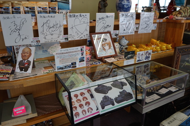 • 旅館内にはファン寄贈のガルパングッズや関係者のサイン色紙などを展示したガルパンコーナーがありました