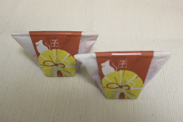 • 絵馬を取ると、なかには干菓子と羊かんがセットになっています。